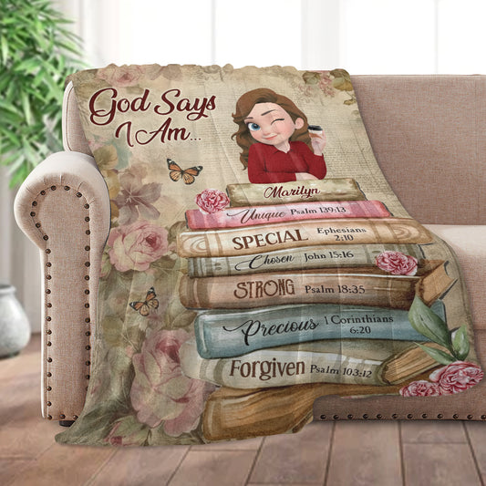 God Says I Am | Personalized Fleece Blanket