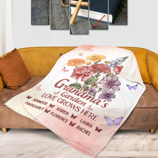 Grandma's Garden Love Grows Here | Personalized Fleece Blanket