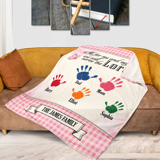 As For Me And My House Family Handprint | Personalized Fleece Blanket JSFBHLT1450D