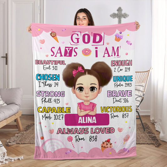 God Says I Am Girls Boys | Personalized Fleece Blanket JSFBHLPA1405L