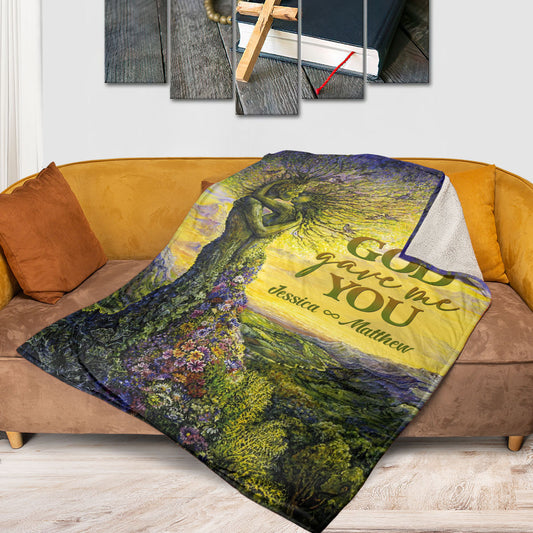 Jesuspirit | Spiritual Marriage Gifts | God Gave Me You | Romantic Personalized Fleece Blanket For Christian Couples FBH823