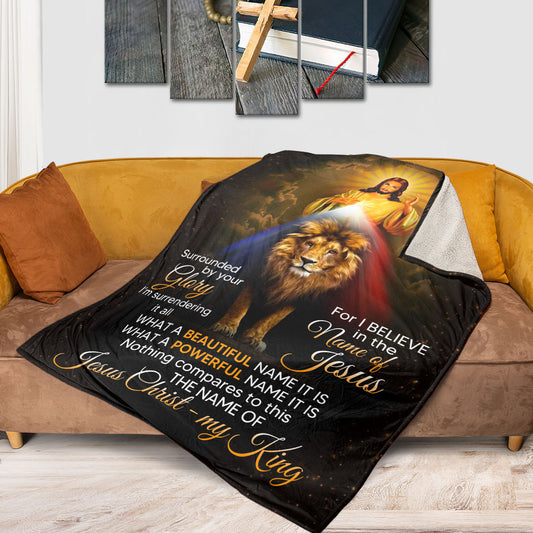 Jesuspirit | Spiritual Gift Of Faith For Christian People | For The Name Of Jesus Christ - My King | Lion And Jesus | Unique Fleece Blanket FBH799
