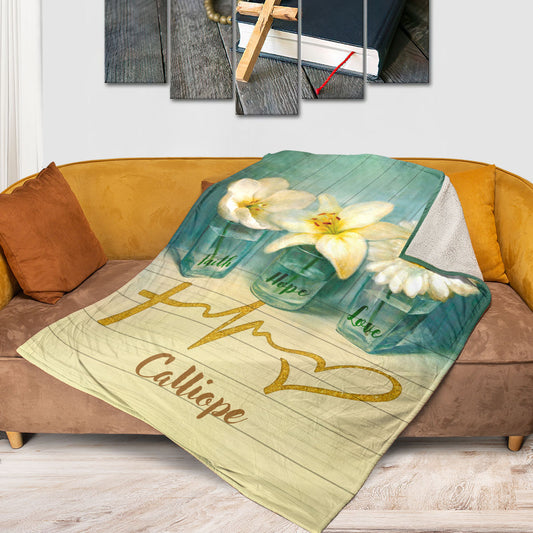 Jesuspirit Personalized Fleece Blanket | Faith Hope Love | Daisy And Lily | Spiritual Gifts For Christian People FBH781