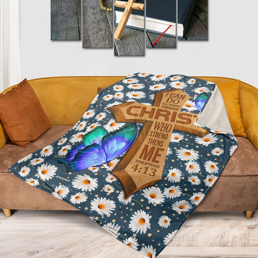 Jesuspirit Daisy Fleece Blanket | I Can Do All Things Through Christ | Philippians 4:13 | Christ Gifts For Religious Family FBH782