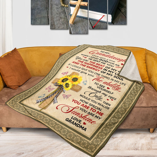 Jesuspirit | You Are My Sunshine | Lovely Personalized Fleece Blanket For Granddaughter | Sunflower And Cross FBH621