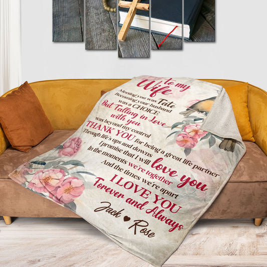 Jesuspirit | Meeting You Was Fate | Meaningful Gift For Christian Wife | Personalized Fleece Blanket | Robin Redbreast & Flower FBH612