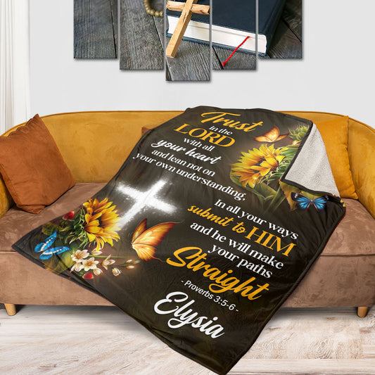 Jesuspirit | Warm Gift For Loved Ones | Proverbs 3:5-6 | Trust In The Lord | Customized Sunflower Fleece Blanket FBH608