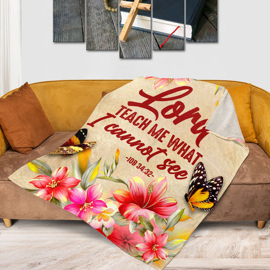 Jesuspirit Fleece Blanket | Lord Teach Me What I Cannot See | Job 34:32 | Lily And Butterfly FBM641