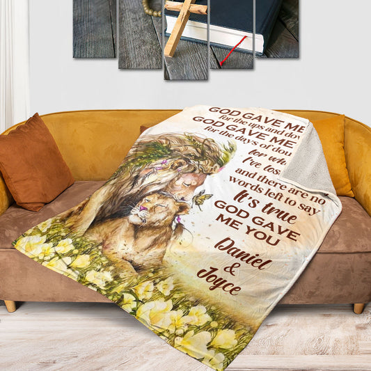 Jesuspirit | Personalized Lion Fleece Blanket | God Gave Me You | Must-Have Item For Couple FBH610
