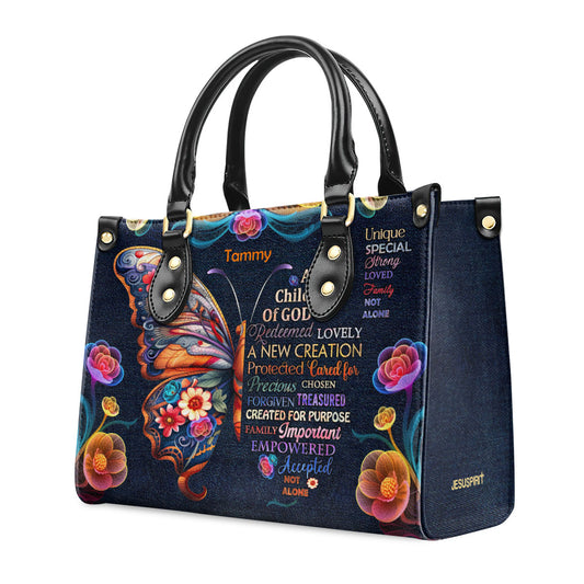 Jesuspirit | Personalized Leather Handbag With Zipper | I Am A Child Of God LHBM776