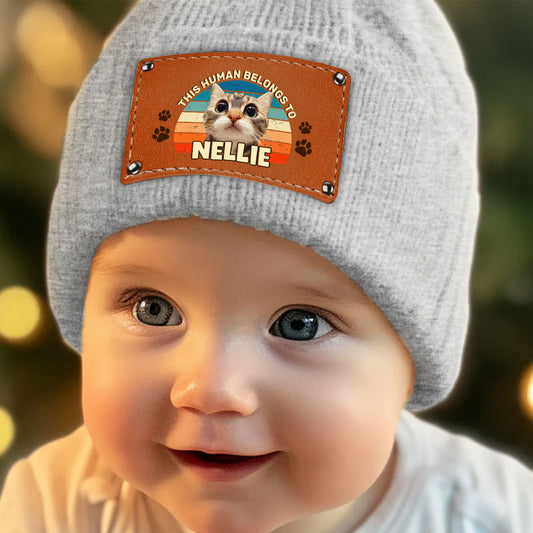 This Human Belongs To | Personalized Leather Knitted Beanie JSLKBPH1953TA