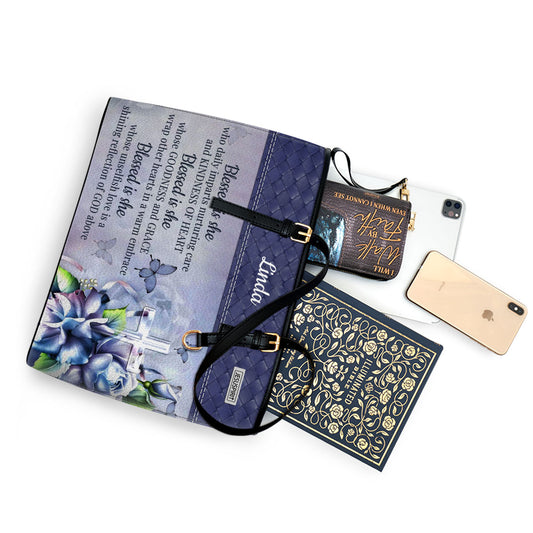 Blessed Is She Who Daily Imparts Nurturing Care And Kindness Of Heart - Personalized Large Leather Tote Bag NUH327
