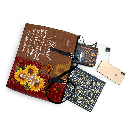 Blessed Are Those Who Snuggle And Hug - Personalized Large Leather Tote Bag NUH329