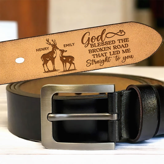 God Bless The Broken Road That Led Me Straight To You | Personalized Engraved Leather Belt