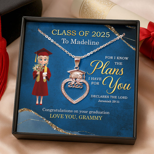 For I Know The Plans I Have For You | Personalized Grad Cap Heart Necklace With Box&Card