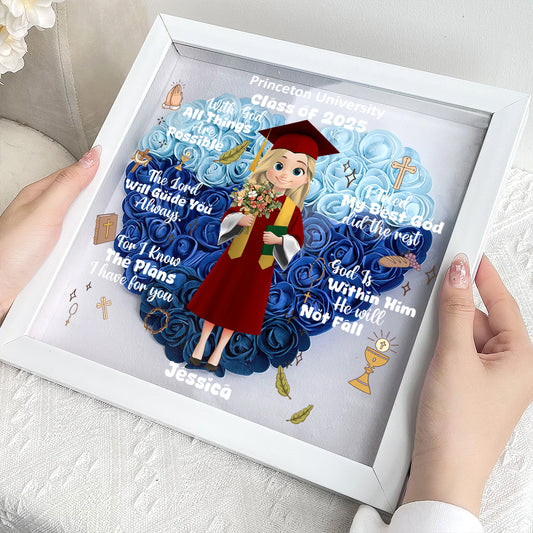 With God All Things Are Possible | Personalized Heart Flower Shadow Box