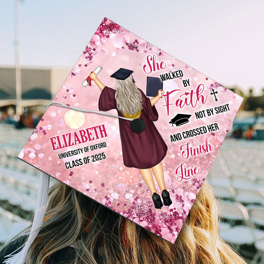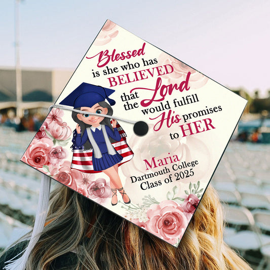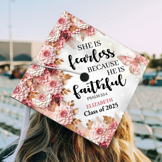 She Is Fearless Because He Is Faithful | Personalized Graduation Cap Topper