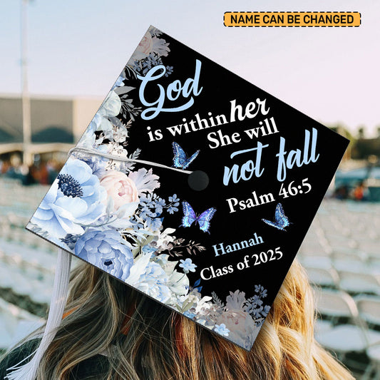 God Is Within Her She Will Not Fall | Personalized Graduation Cap Topper