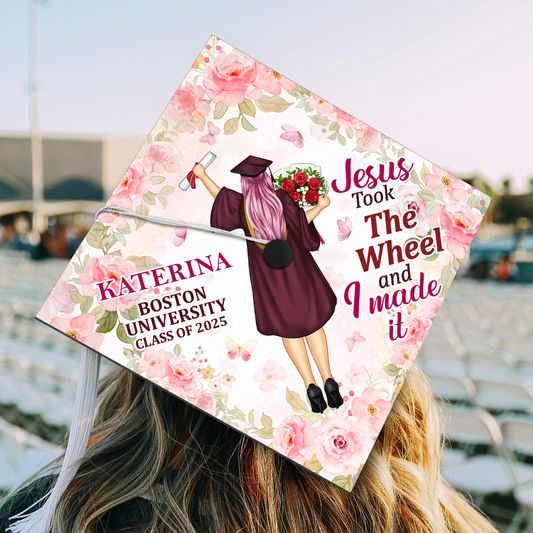 Jesus Took The Wheel And I Made It | Personalized Graduation Cap Topper