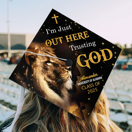 I'm Just Out Here Trusting God | Personalized Graduation Cap Topper