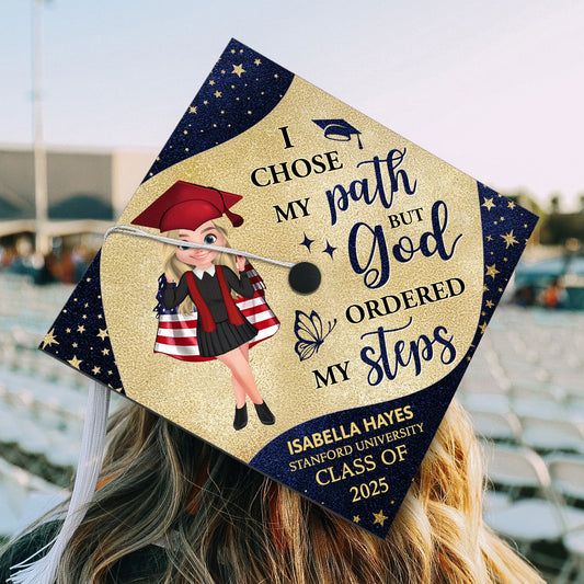 I Chose My Path But God Ordered My Steps | Personalized Graduation Cap Topper