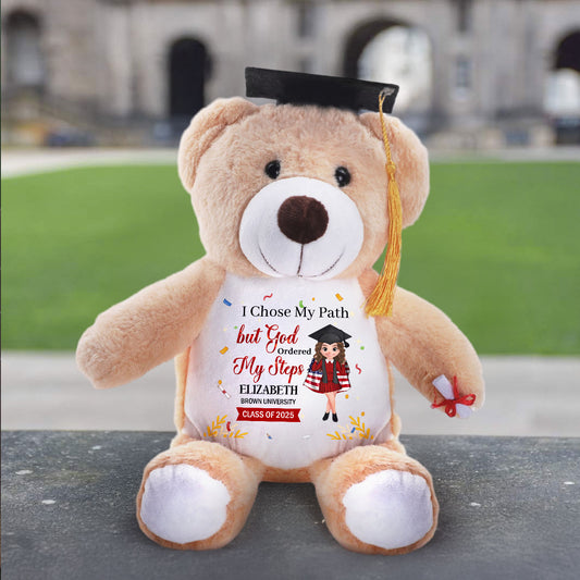 I Chose My Path But God Ordered My Steps | Personalized Graduation Teddy Bear