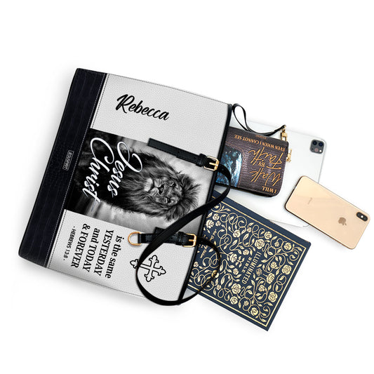 Jesus Christ Is The Same Yesterday And Today And Forever - Awesome Personalized Large Leather Tote Bag NUH456