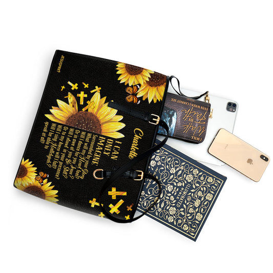 Jesuspirit | Personalized Large Leather Tote Bag With Long Strap | I Can Only Imagine | Sunflower And Cross LLTBHN153