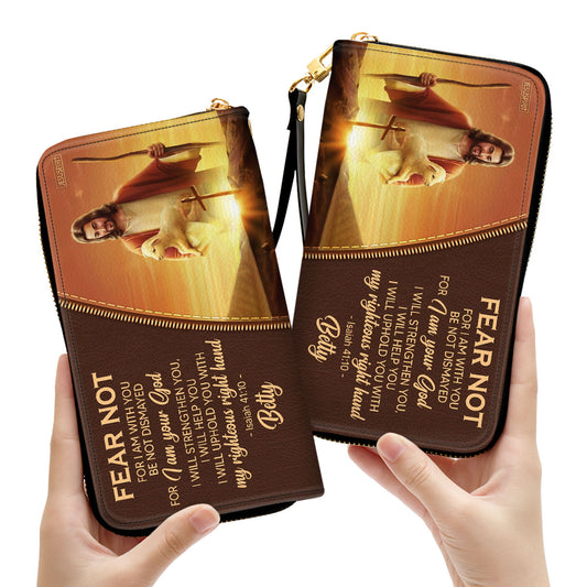 Jesuspirit | No Weapon Formed Against You Shall Prosper | Isaiah 54:17 | Personalized Zippered Leather Clutch Purse | Scripture Gifts For Religious Woman HH175N