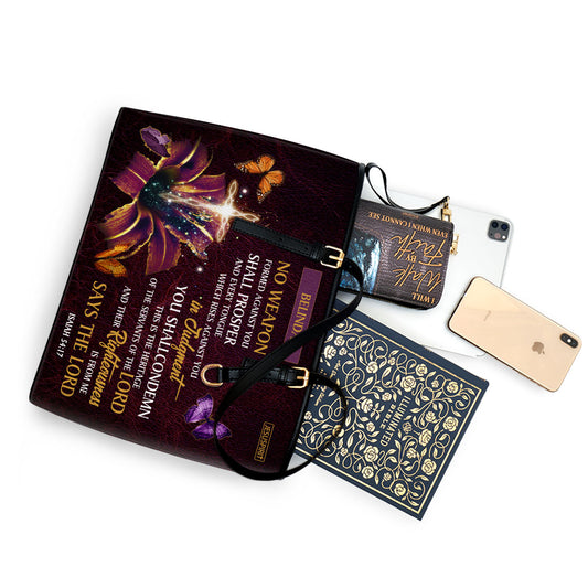 No Weapon Formed Against You Shall Prosper - Special Personalized Large Leather Tote Bag NUM394