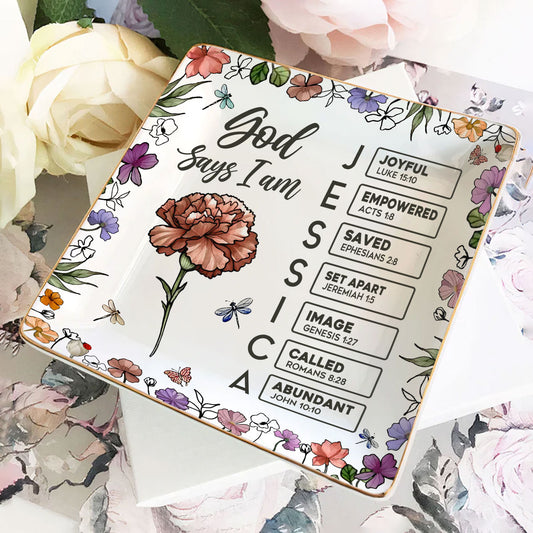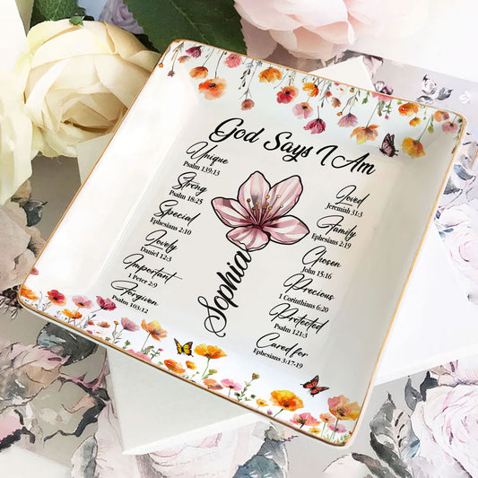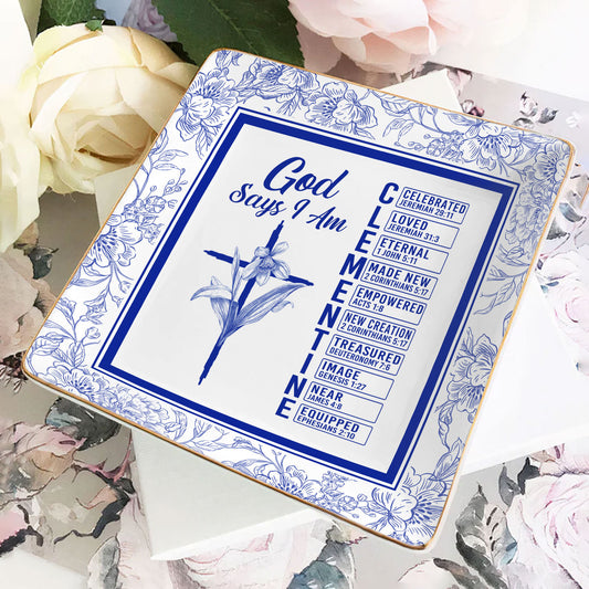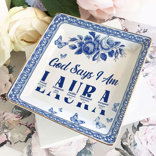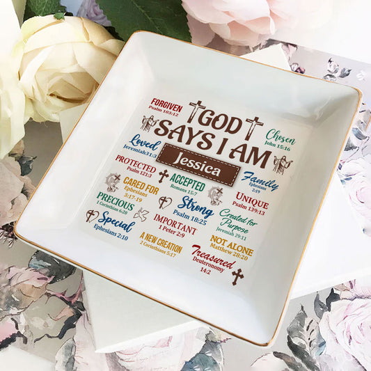God Says I Am | Personalized Square Shaped Jewelry Dish