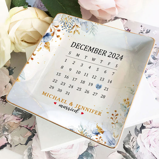 Wedding Calendar Date | Personalized Ceramic Ring Dish Square