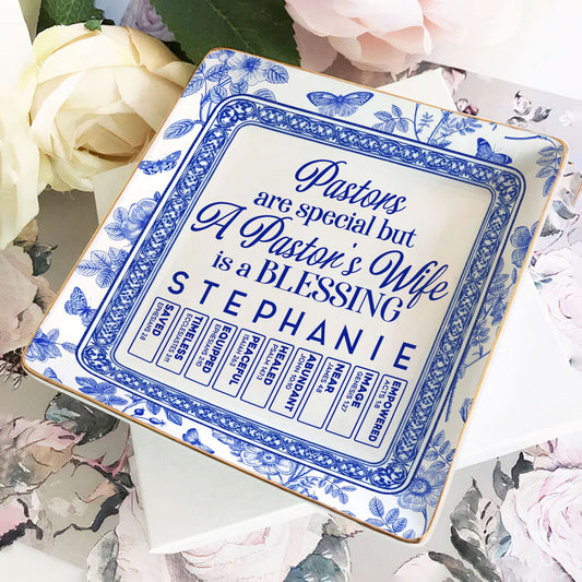 Pastor's Wife Is A Blessing | Personalized Ceramic Ring Dish Square