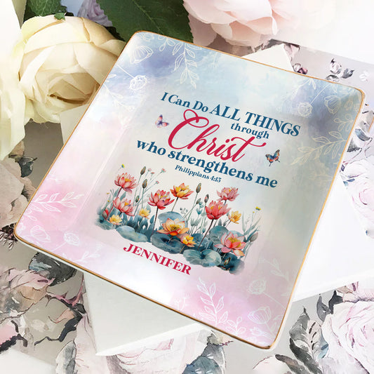 I Can Do All Things Through Christ - Personalized Ceramic Ring Dish Square