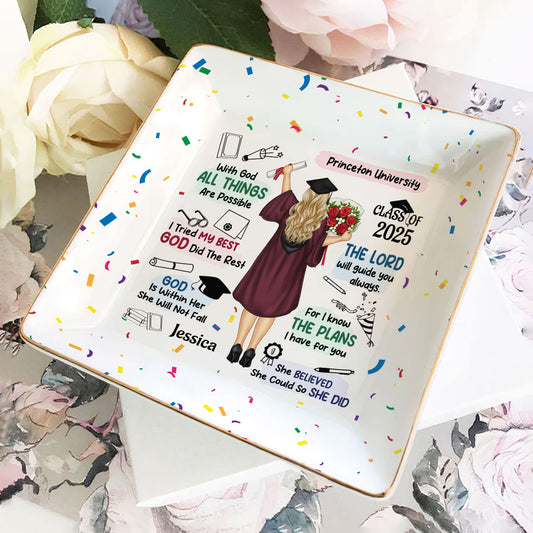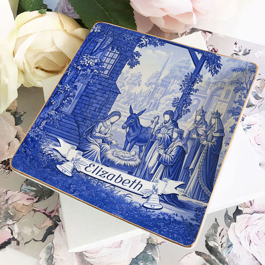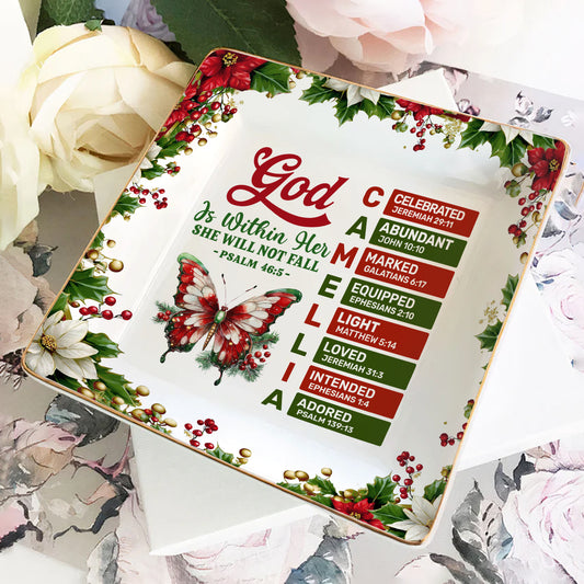God Is Within Her She Will Not Fall | Personalized Ceramic Ring Dish Square