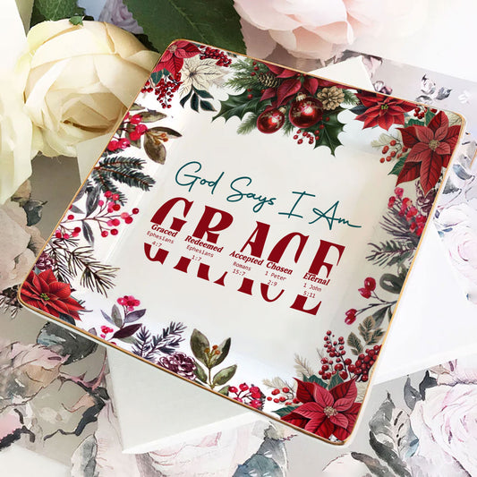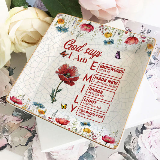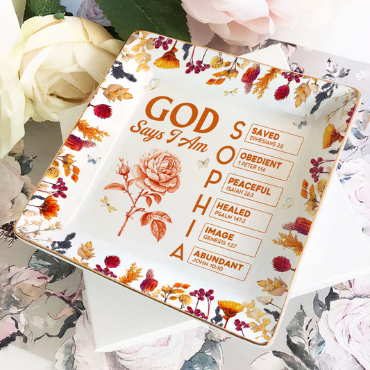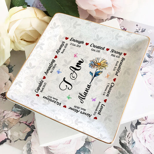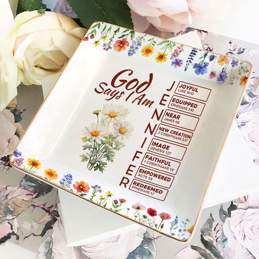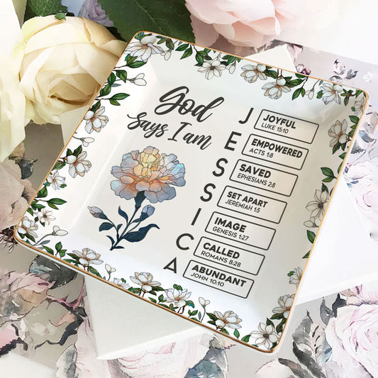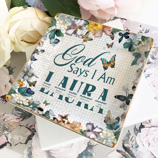 God Says I Am | Personalized Ceramic Ring Dish Square