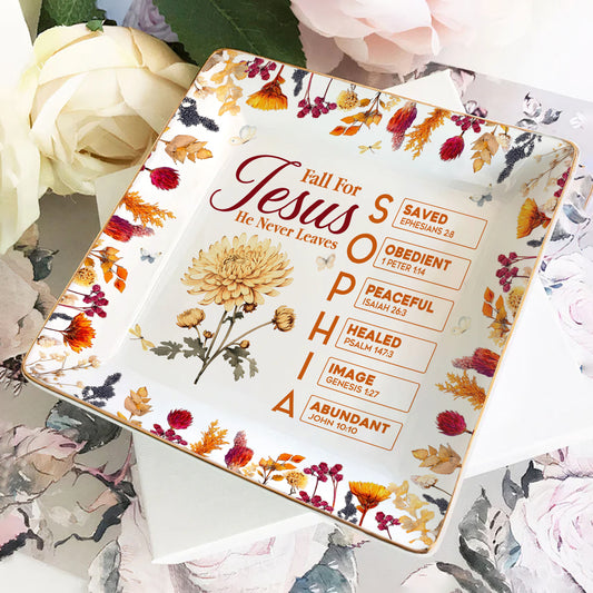 Fall For Jesus He Never Leaves | Personalized Ceramic Ring Dish Square