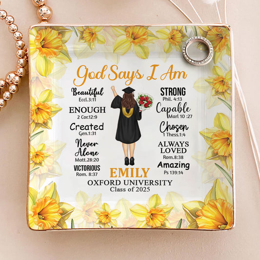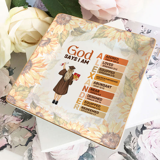 God Says I Am | Personalized Ceramic Ring Dish Square