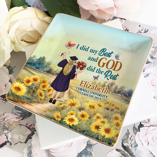 I Did My Best And God Did The Rest - Personalized Ceramic Ring Dish Square