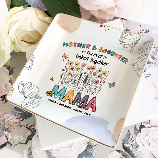 Mother & Daughters Forever Linked Together | Personalized Ceramic Ring Dish Square