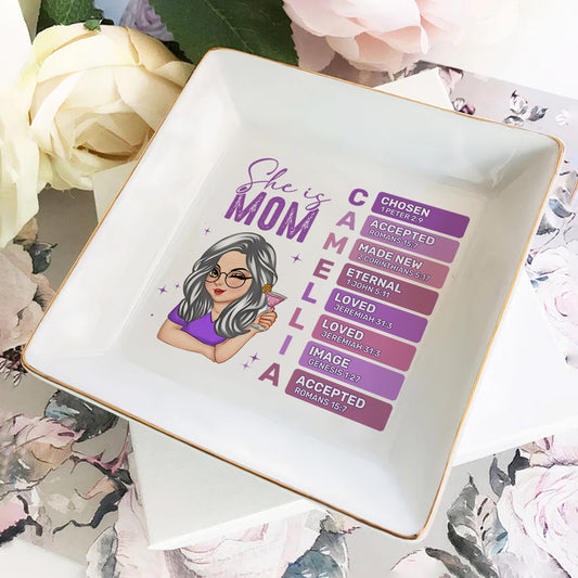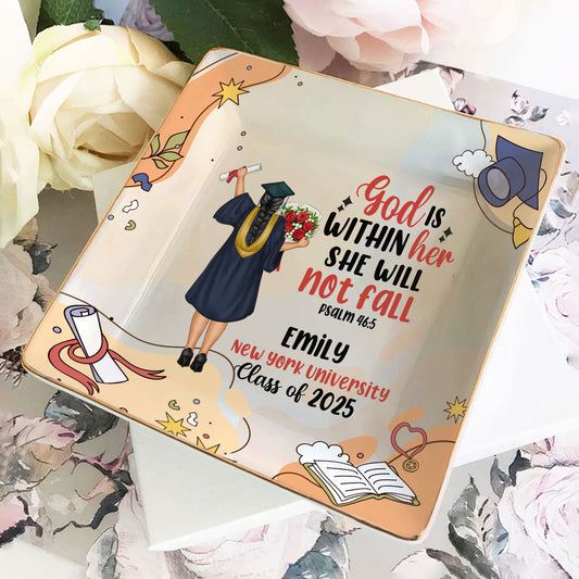 God Is Within Her She Will Not Fall | Personalized Ceramic Ring Dish Square