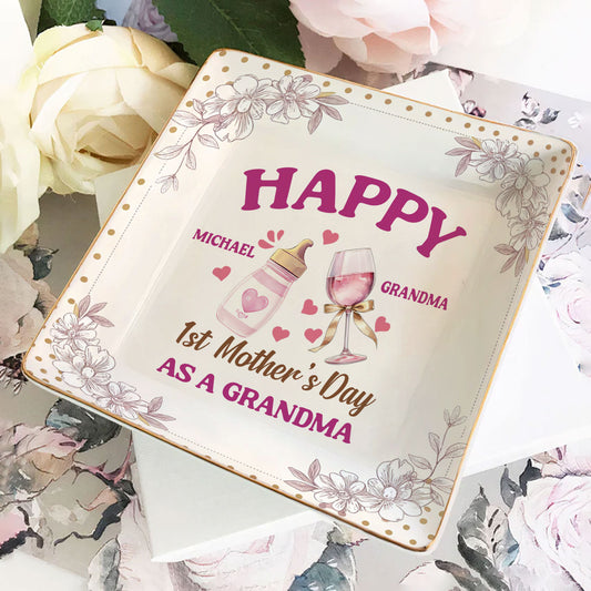 Happy First's Day As A Grandma | Personalized Ceramic Ring Dish Square