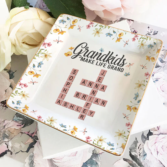 Grandkids Make Life Grand | Personalized Ceramic Ring Dish Square