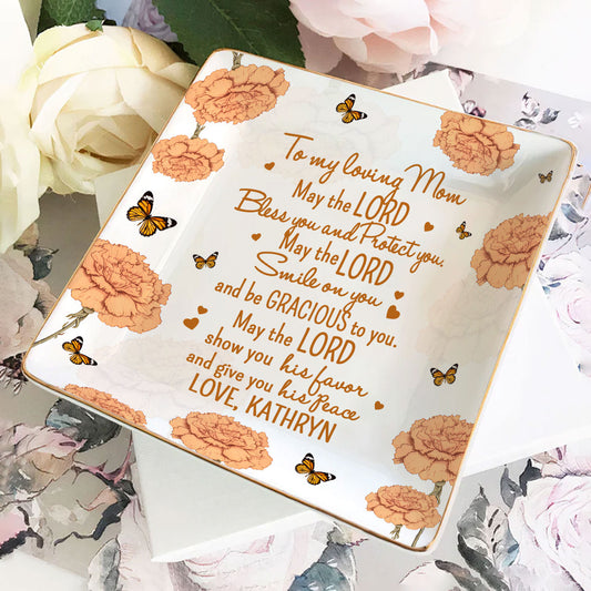 May The Lord Bless You And Protect You | Personalized Ceramic Ring Dish Square