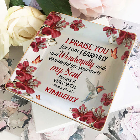 I Praise You For I Am Fearfully And Wonderfully Made | Personalized Ceramic Ring Dish Square