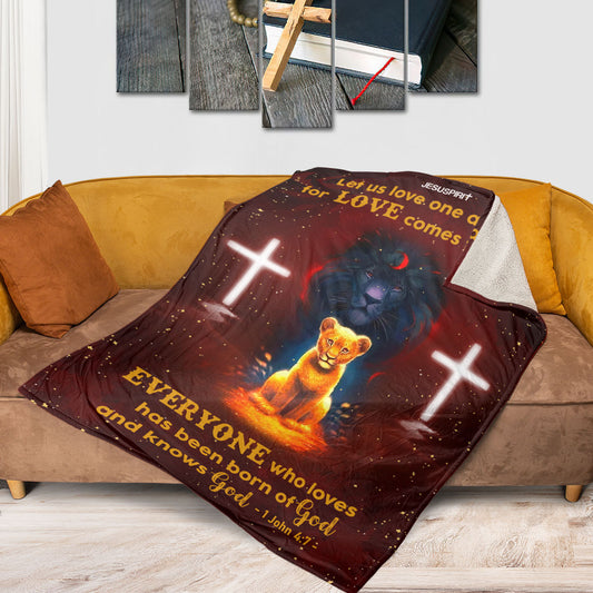 Jesuspirit | Everyone Who Loves Has Been Born Of God And Knows God | 1 John 4:7 | Fleece Blanket | Cross And Lion FBHN617