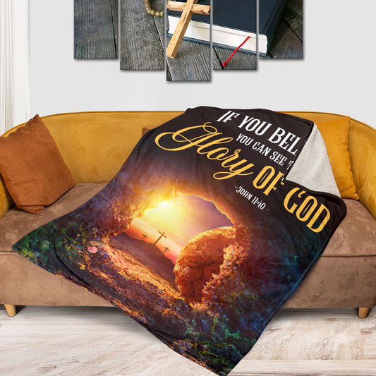 Jesuspirit | If You Believe You Can See The Glory Of God | John 11:40 | Stunning Cross Fleece Blanket FBM637