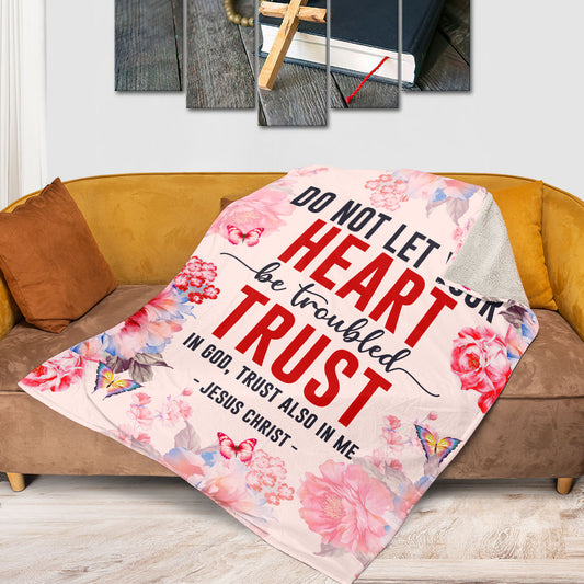 Jesuspirit | Do Not Let Your Heart Be Troubled | John 14:1 | Fleece Blanket | Rose And Butterfly FBM646