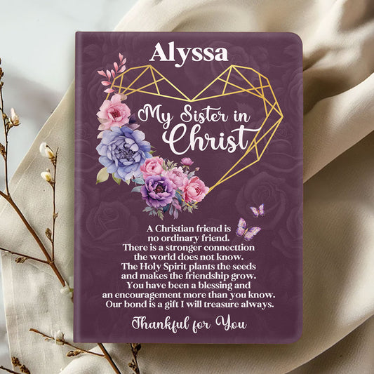 Thankful For My Sister In Christ | Personalized Leather Cover Notebook