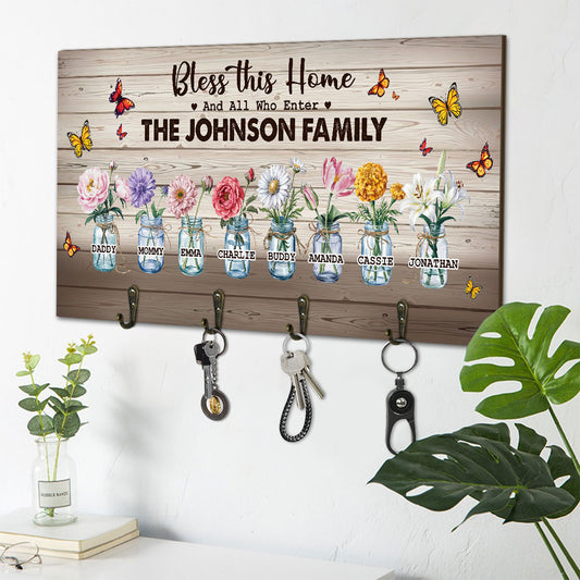 Bless This Home Flowers | Personalized Key Holder JSUWKHCSHLT1794L